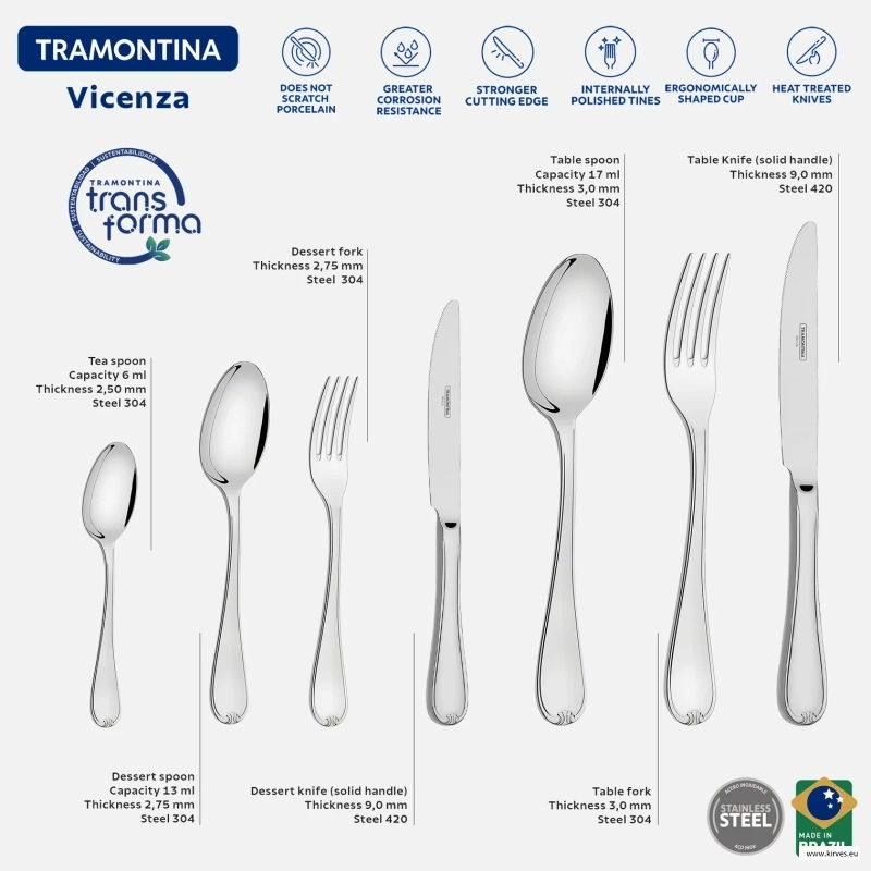 Tramontina roostevabast terasest söögiriistade komplekt Vicenza 42 osa